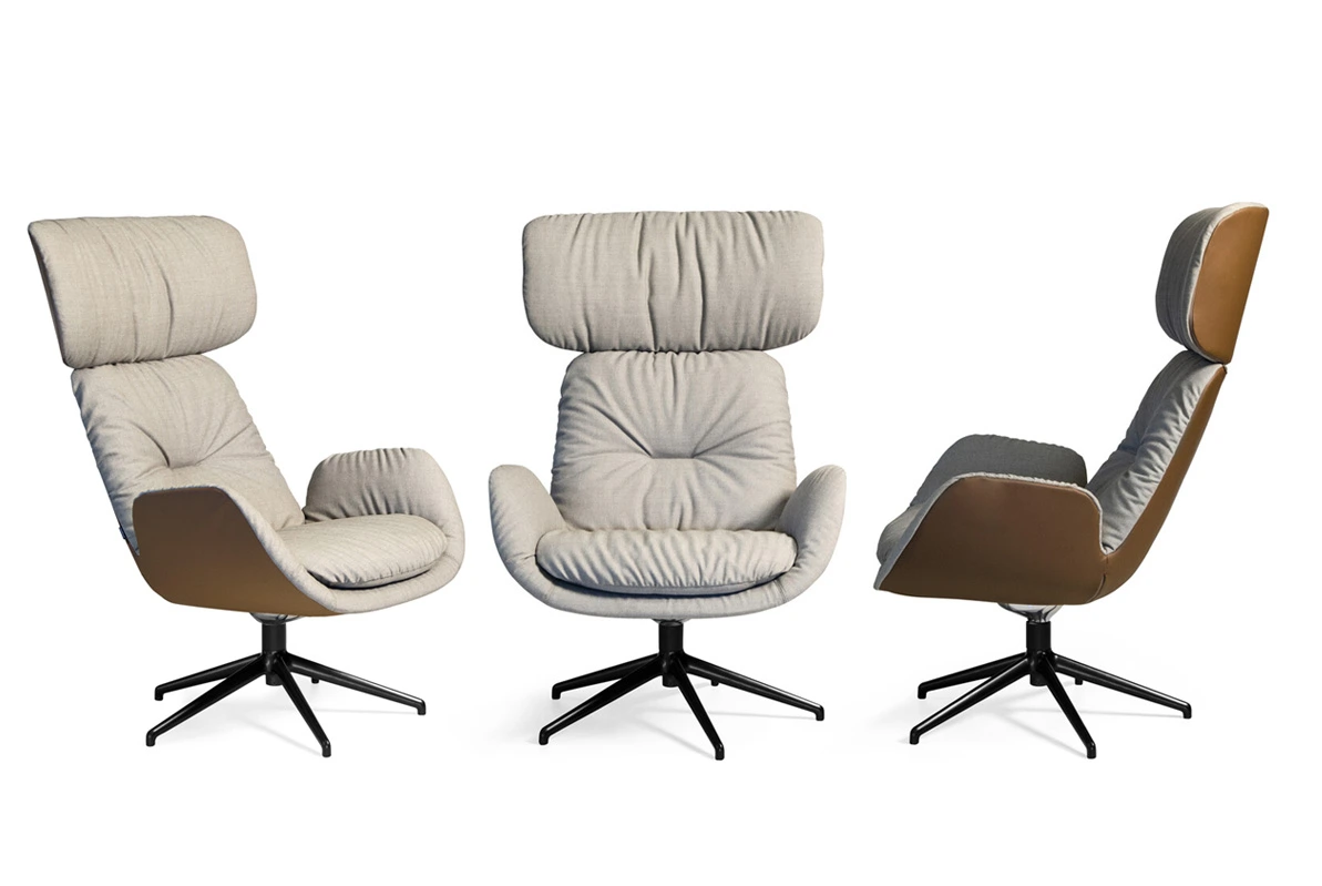 Sa coque emblématique et son dossier harmonieux offrent confort et caractère discret à tout intérieur.