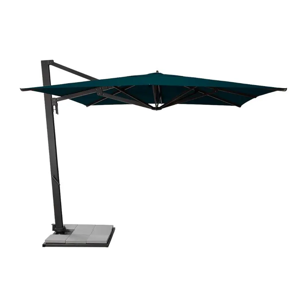 Pour une stabilité parfaite ce parasol déporté, il se complète d’une base lestée dédiée.