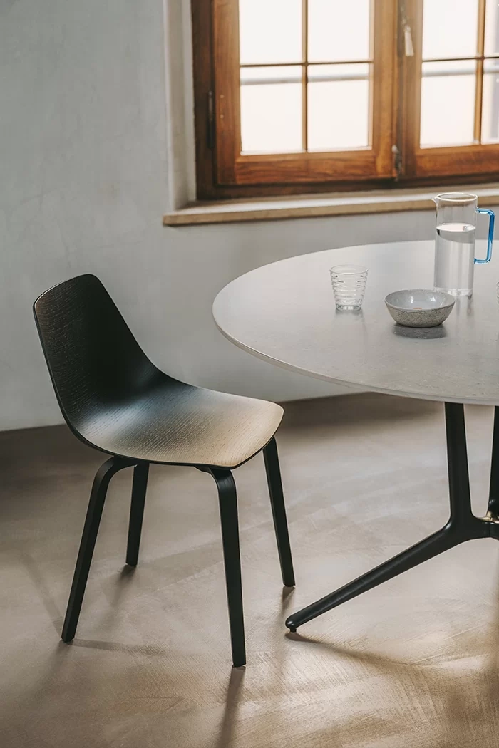 Parmi les nouveautés 2025 figure le système de tables TRAIL, conçu par Giuseppe Bavuso. Se distinguant par une esthétique placée sous le signe de la légèreté et de l’élégance, où les références aux années 50 rencontrent le style nordique cher à l’entreprise depuis toujours, cette proposition présente une base e aluminium moulé sous pression aux lignes douces, conçue pour former différentes configurations. Elle est prête à accueillir des plateaux ronds qui, en s’allongeant, évoluent vers une délicate forme de tonneau. TRAIL répond aux différents styles et exigences de conception grâce aux différentes finitions proposées pour la base et le plateau, trouvant son emplacement idéal dans les espaces fluides contemporains : à la maison, au bureau et pour les gros marchés.