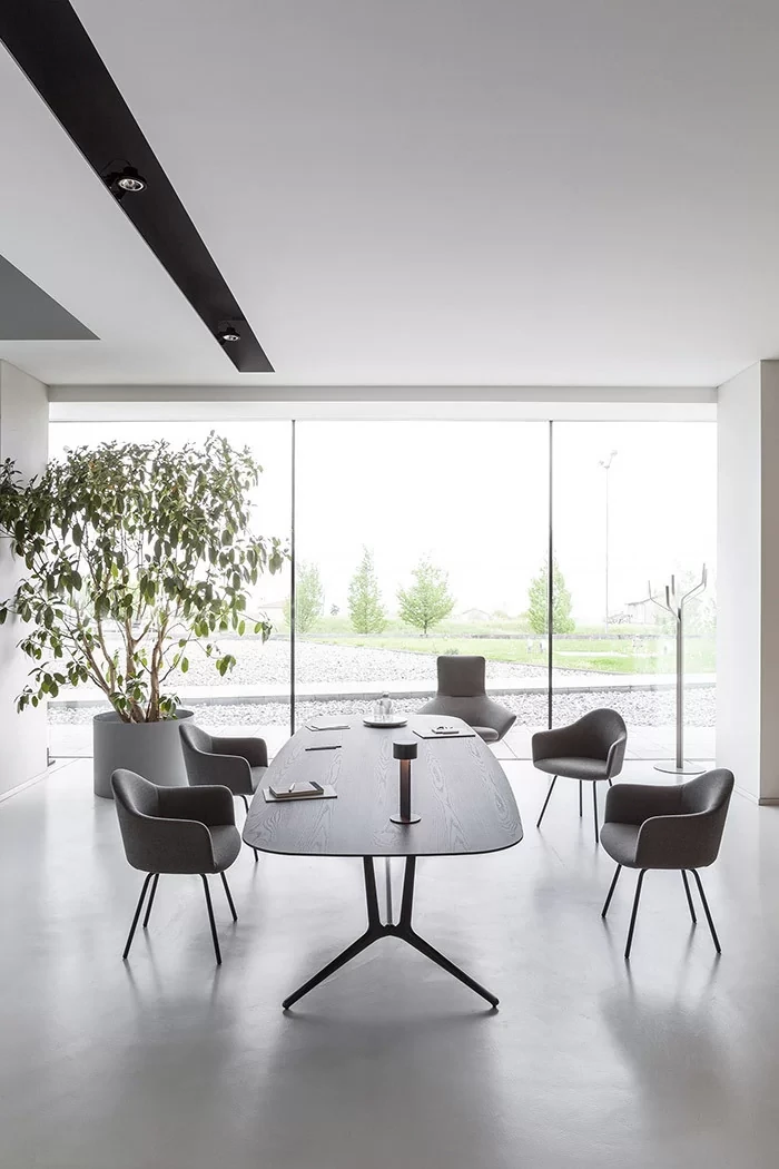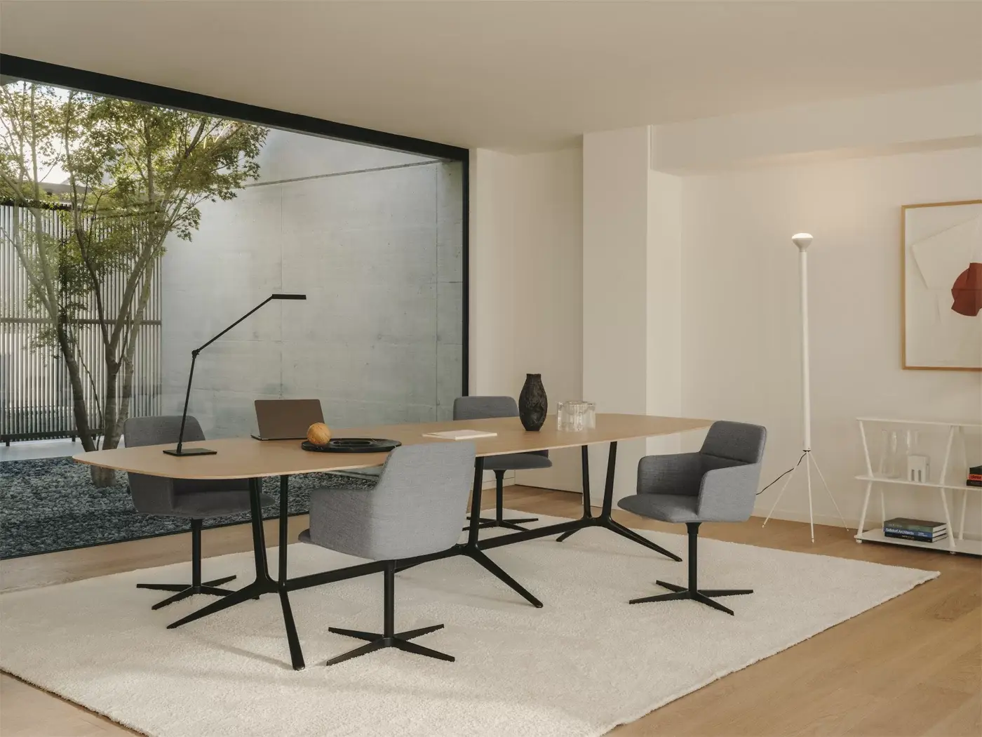Le système de tables TRAIL offre une esthétique légère et élégante, inspirée des années 50 et du design nordique.